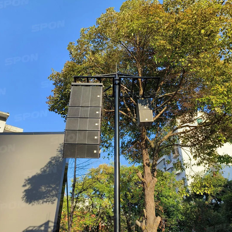 世邦的戶外線陣系統在諸多學校的戶外操場都有應用,適合戶外寬闊環境下的擴聲要求。長沙四大名校之一的長郡中學,操場外圍靠近鬧市住宅區,世邦的操場擴聲系統根據主席臺無頂棚的條件設計,操場聲音完全覆蓋操場主區域現場效果得到了學校老師們的一致好評。