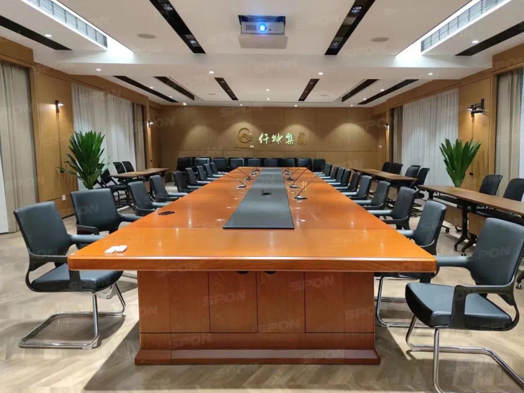 世邦根據仟坤集團實際情況,對會議室進行智能化升級改造。集團大會議室主要用于動員會議、培訓以及舞臺活動的使用,考慮到客戶實際使用需求,世邦部署了IP網絡數字會議系統搭配無線U段手持話筒。