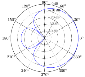 1.在目標方向無失真(θ=0°時,拾音增益為1);