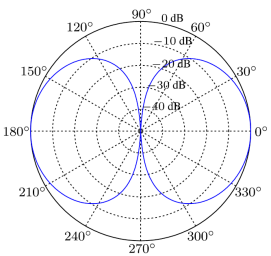 2.在0°<θ≤180°的范圍內存在一個零陷。